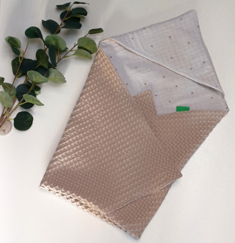 Leuke badcape met hartjesprint en beige wafelkatoen