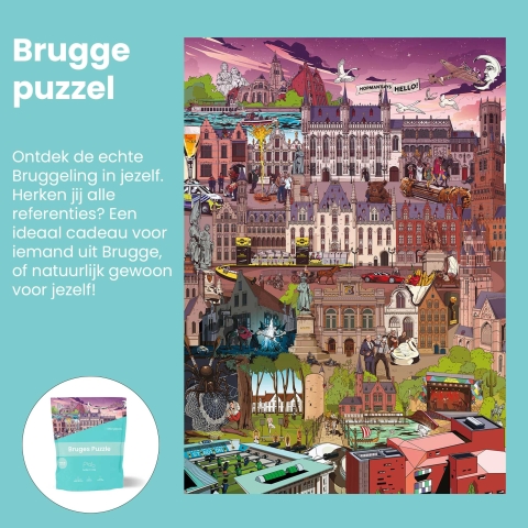 Ontdek Brugge in al z'n pracht en praal! Ga op zoek naar alle bekende Bruggelingen of zoek je weg tussen alle trekpleisters. Van de historische binnenstad tot de Brugse Zwaan, je vindt ze allemaal terug op deze mooie puzzel.