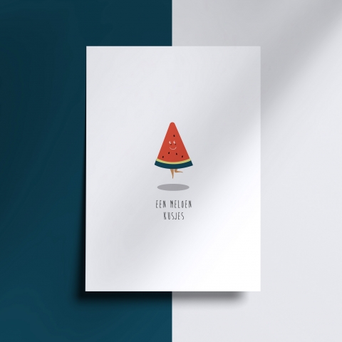 Raad eens hoeveel ik van je hou? De liefde van die zomaar kaartje spat ervan af. Niet traditioneel met hartjes, knuffelberen of rozenblaadjes, maar met een ontzettend schattig meloentje. Een frisse, fruitige en vooral heel lieve wenskaart.