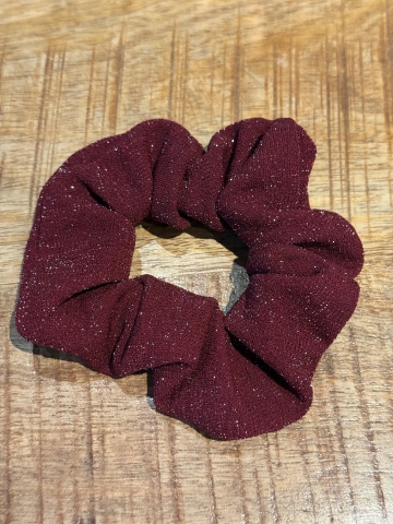 Handgemaakt Model: Scrunchie original Materiaal: Lurex Kleur: Rood met glitters Omtrek: 12 cm