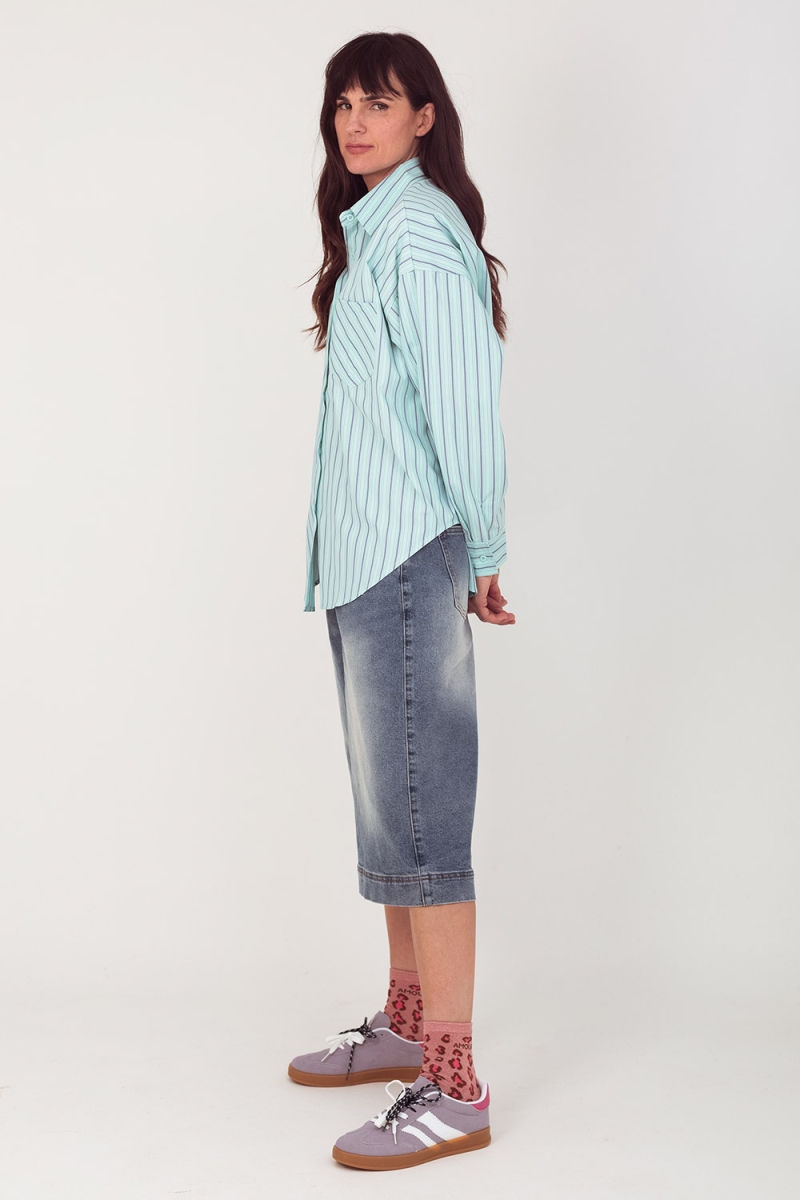 Jeans Toke oversized is een bermuda van het merk Toxik3 uit Parijs. Het is een nostalgische rekbare jeans net over de knieën, goed ruim. Broek is uitgerust met twee insteekzakken en twee zakken achteraan.