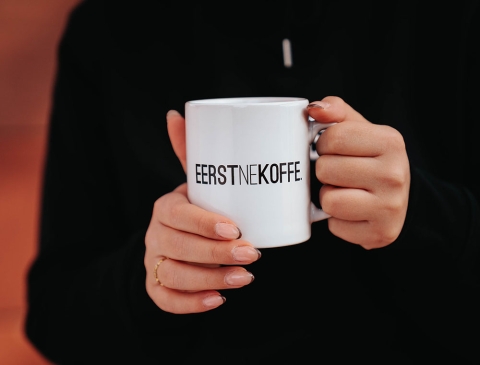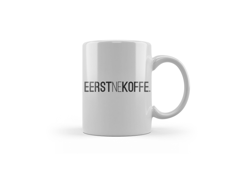 EERST•NE•KO•FFE. (uitdrukking) Eerst een koffie