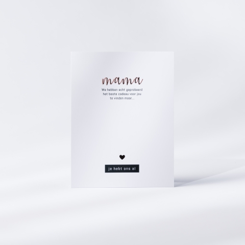 Wat is er persoonlijker dan op een kaartje vertellen dat jouw moeder toevallig de leukste en de liefste is.