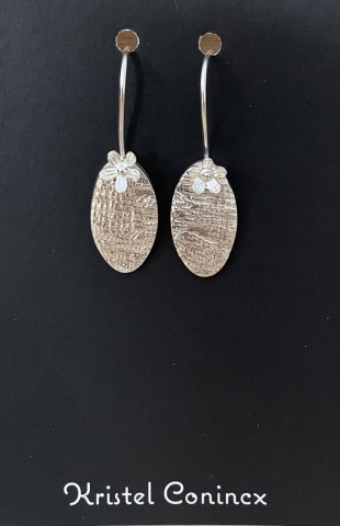 Handgemaakte zilveren oorbellen met mooie bloemenoorhaakje