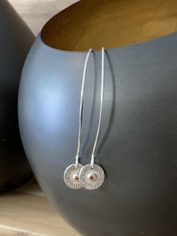 Handgemaakte zilveren oorbellen met lange oorhaken en roestkleurige zirconia