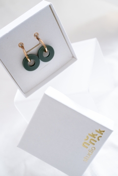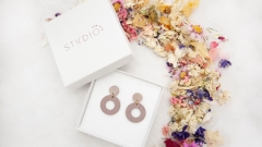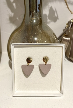 Zilverkleurige, nikkelvrije oorstekers werden gecombineerd met een metalen hanger met lichtgrijze rubbercoating. Fijn om te dragen en licht van gewicht. Ongeveer 4 cm lang.