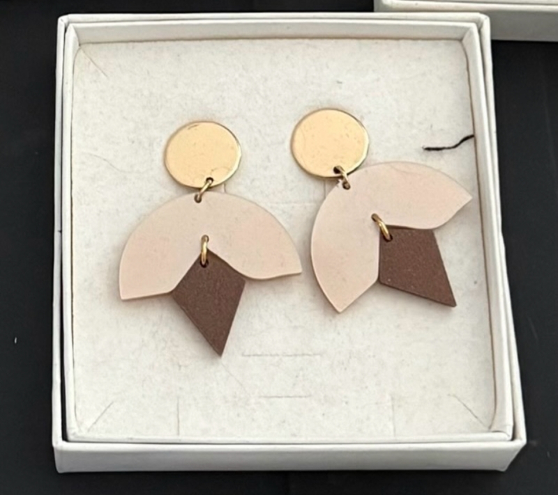 Handgemaakte oorbellen van Studio Nok Nok. Materiaal: Gold plated, nikkelvrije messing & 100% gerecycleerd acryl