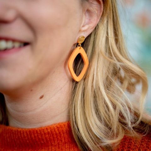 Totale lengte: 5,3 cm Totale breedte: 3,3 cm Materiaal: Gold plated, nikkelvrije messing, 100% recycled acryl