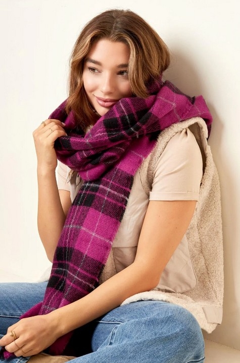Superleuke, roze sjaal met zwarte ruitjes die je perfect kunt combineren met een warme muts en handschoenen voor een winterse look! Hij is gemaakt van acryl, een zachte stof die niet kriebelt, maar wel genoeg warmte geeft. Door zijn afmeting van 200cm x 75cm valt hij heerlijk groot en kan je hem op allerlei manieren dragen.