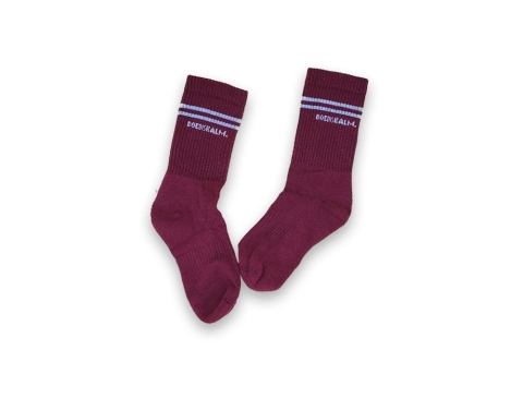 Comfortabele bordeaux sokken met opschrift DOEDISKALM. voor mannen en vrouwen. De kousen hebben een normale pasvorm met verdikking aan de zool voor extra comfort. Als cadeau of gewoon voor jezelf. Recht uit Antwerpen. Met trots voor het dialect.