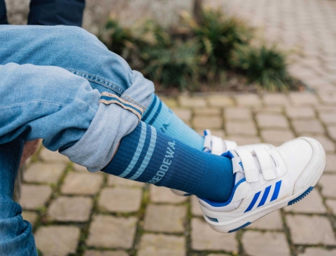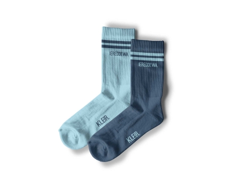 Comfortabele licht - en donkerblauwe sokken met opschrift IEREDDEWA. voor volwassenen. De kousen zijn stevig, redelijk dik en hebben een normale pasvorm met een extra verdikking aan de zool voor extra comfort. Als cadeau of gewoon voor jezelf. Recht uit Antwerpen. Met trots voor het dialect.