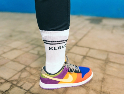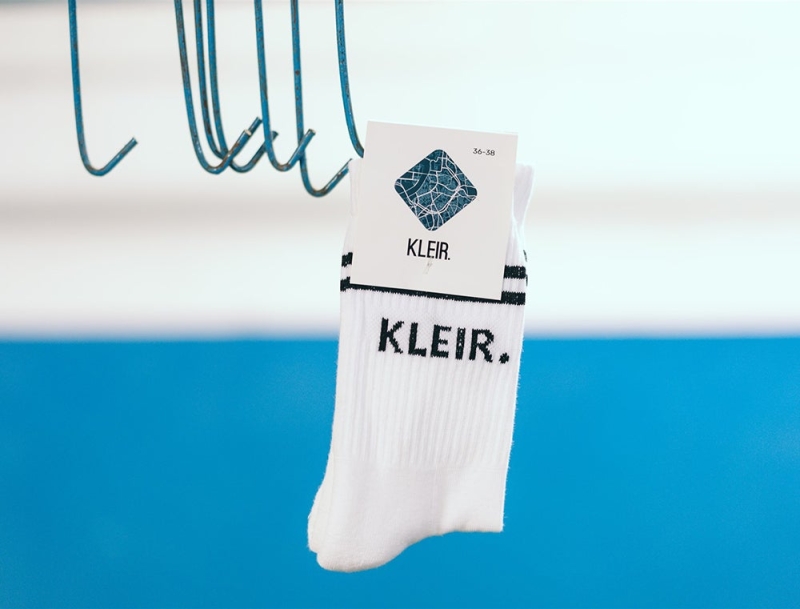 Comfortabele witte sokken met opschrift KLEIR. voor mannen en vrouwen. De kousen hebben een normale pasvorm met verdikking aan de zool voor extra comfort. Als cadeau of gewoon voor jezelf. Recht uit Antwerpen. Met trots voor het dialect.