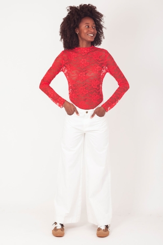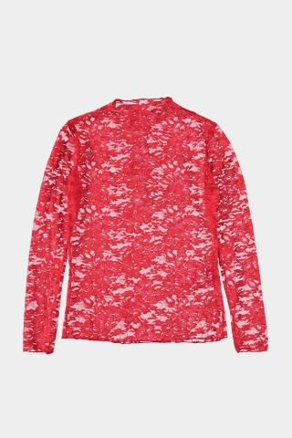 Top Kant rood is een shirt van het merk J&L. Dit kanten rode shirt heeft een bloemenmotief en lange mouwen. Het is een rekbaar recht model dat mooi combineerbaar is.