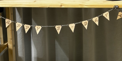 Houten uitdrukbare kaart met alle stukjes kan je een mooie slinger maken