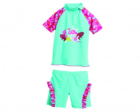 UV-beschermende zwemset Flamingo - aquablauw