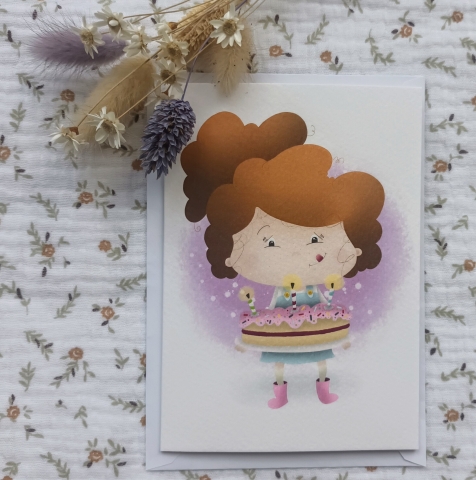 Formaat postkaarten: A6 (148mm x 105mm) Inhoud: 1 gevouwen kaart, 1 omslag en 1 sticker aan de hand van de wenskaart.