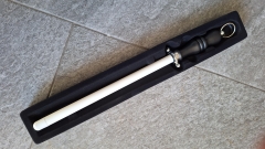 San Mai: 3 lagenstaal, kan in koolstofstaal, maar ook met koolstofstalen kern tussen 2 roestvrije lagen, die het onderhoud iets vereenvoudigen.