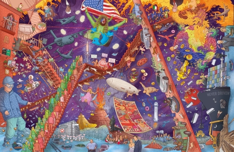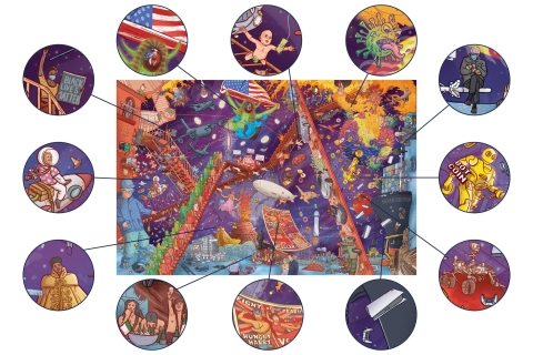 --- Gratis levering bij meerdere puzzels 1.000 stukken Afmetingen: 680 x 440 mm Tal van referenties naar het jaar 2021 Herbruikbare zak als cadeauverpakking Krantje met bijkomende informatie Mysterie Envelop