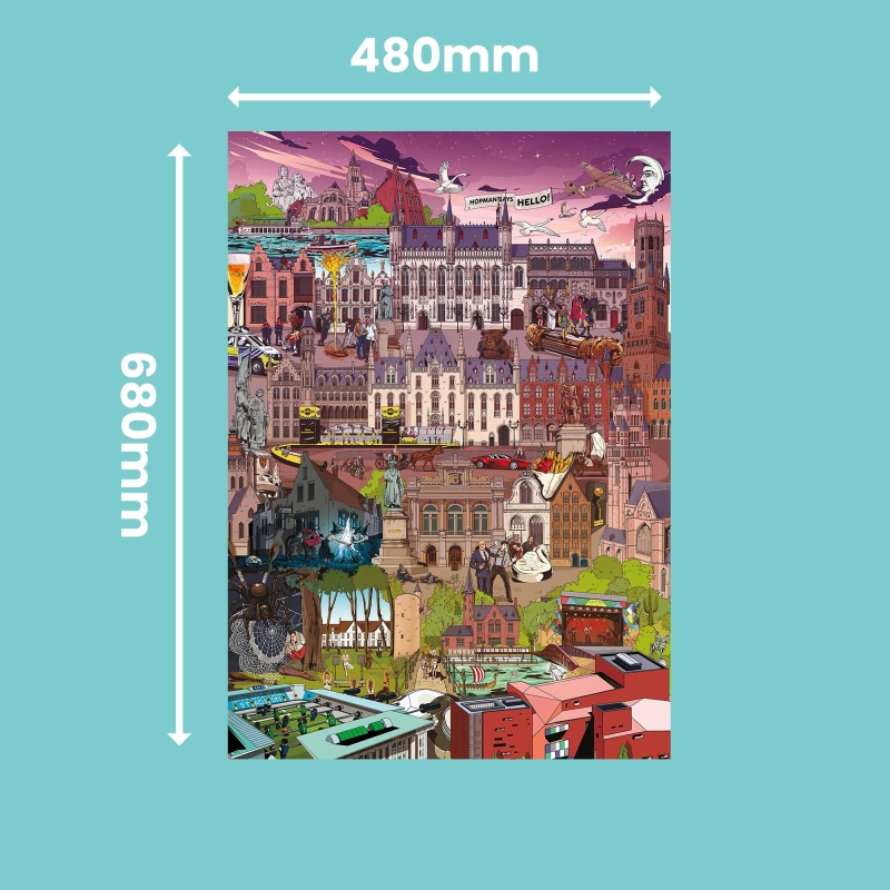 Ontdek Brugge in al z'n pracht en praal! Ga op zoek naar alle bekende Bruggelingen of zoek je weg tussen alle trekpleisters. Van de historische binnenstad tot de Brugse Zwaan, je vindt ze allemaal terug op deze mooie puzzel.