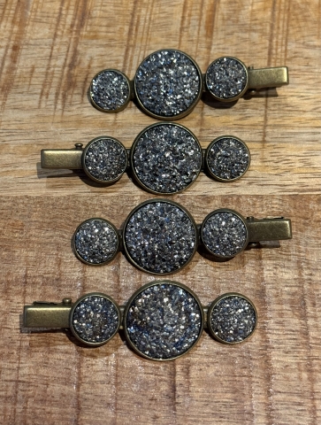 Steel de show met deze prachtige speld in je haren! Handgemaakt Materiaal: Nikkelvrij Kleur: Donkergrijs met glitters Lengte: 6.5 cm Breedte: 2 cm