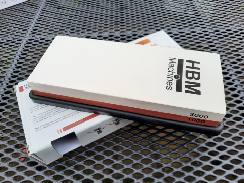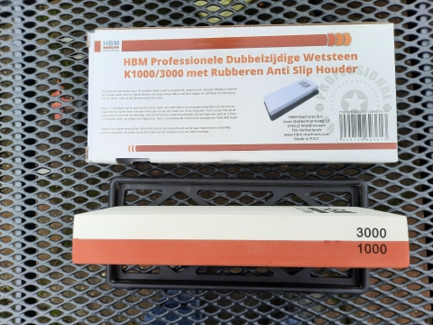 De zijde met korrel 1000 gebruik je om de snede na de steen van korrels 180 en 600 verder te verfijnen. De zijde van korrel 1000 is voor veel messen fijn genoeg om een mooie scherpe snede op te leveren, maar wordt voor keukenmessen meer gebruikt als een tussenstap naar de steen van korrel 3000 voor een heel fijne en super scherpe snede. Dat laat ik ook zien in mijn workshops die ik geef in de workshopruimte van Combidee.