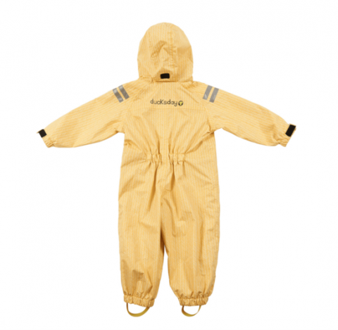 De wind- en waterdichte regenpakjes uit één stuk zijn nog steeds het meest populaire item uit de Ducksday-collectie. Slimme details zorgen voor een comfortabele pasvorm. De Ducksday regenpakjes horen een beetje "baggy" te zijn (ruim te zitten), dat is handig want hierdoor passen ze zelfs met extra dikke en warme kleren eronder nog heel mooi. Dat betekent heel het jaar rond buitenplezier!