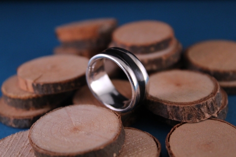 Mooie handgemaakte zilveren ring met zwarte uv hars