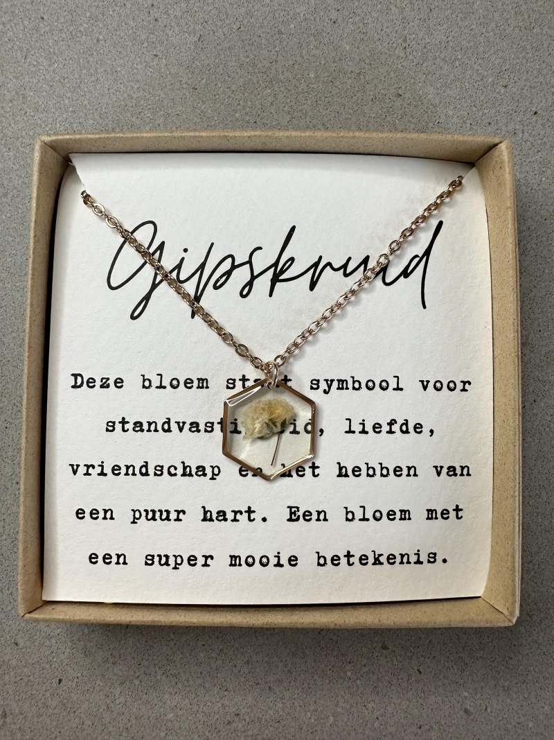 Bloemen zijn een product van de natuur. Elk bloemetje is uniek en ziet er iets anders uit. Het juweel dat u straks in de brievenbus krijgt, kan dus iets verschillen met deze foto.
