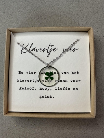 De blaadjes van het klavertje vier staan voor geloof, hoop, liefde en geluk.