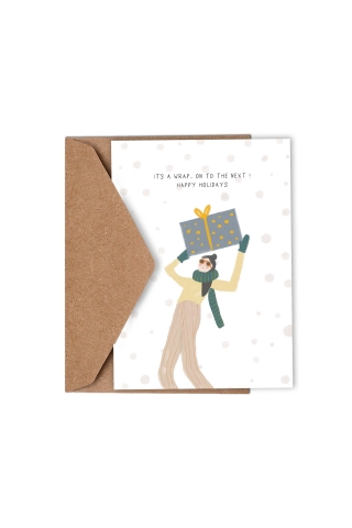 Kerstkaart - "It's a wrap, onto the next . Happy holidays!"