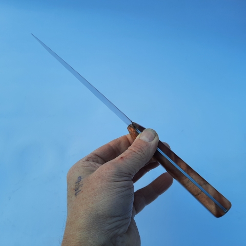 Deze Kiritsuke is mijn interpretatie van een variante op de Japanse Chef, met de typische hoekige K-tip.