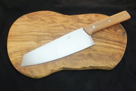 De scherpe punt is ideaal voor fijn werk. De rechte rug kan gebruikt worden om de snijplank proper te schrapen en het gesneden voedsel in de kookpot of kom te schuiven, zonder de snede extra te belasten; De snede zal zo langer scherp blijven. Door de hoogte is het makkelijk om groenten van de snijplank op te scheppen. Het is ook comfortabel om tegen de vingers van de ondersteunende hand te glijden tijdens het snijden. Het rechte handvat is geïnspireerd op de Japanse “Wah” handvaten van Japanse keukenmessen. Dit handvat leent zich goed voor de professionele “pinch grip” waarbij het mes principieel tussen duim en wijsvinger wordt vastgenomen vóór het handvat zelf. Ook typisch op Japanse messen.