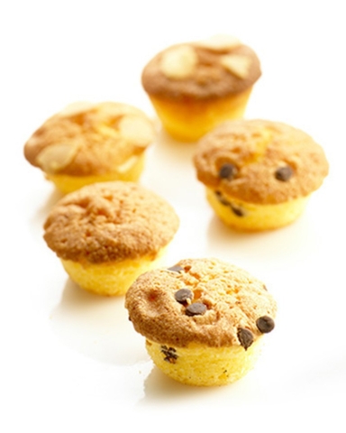 Heerlijke luchtige cakjes met stukjes chocolade en met geschaafde amandelen.