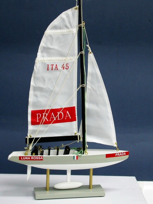 Miniatuur “Prada” “America Cup” Handgemaakt Lengte 24,7 cm Hoogte 40 cm Breedte 5,2 cm