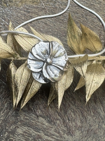 Hanger bloem, ook zilver, gezwart om oud-zilver-look te verkrijgen
