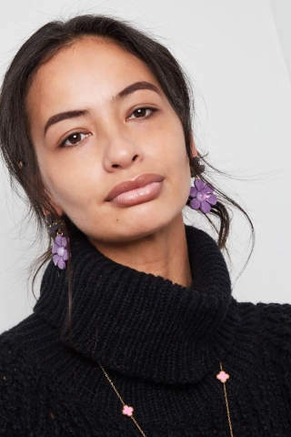 Oorbel Nona is een oorbel van het merk Yehwang. Hoe tof zijn deze oorbellen met bloem en glaskralen. Deze prachtige oorbellen zijn gemaakt van stainless steel, acryl en glaskralen en hebben een afmeting van 5,4 cm. Oorbellen bloem met glaskralen is verkrijgbaar in de volgende kleuren: wit en paars.