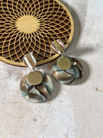 Deze hangers uit resin met daaraan een zilverkleurig elementje zijn ideaal voor de herfst! Elke hanger is uniek! Ze hangen aan zilverkleurige, nikkelvrije oorstekers.