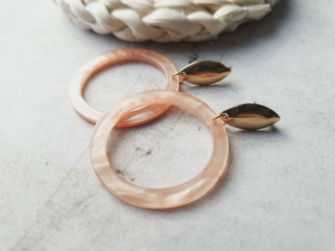 Goudkleurige roestvrijstalen oorstekers gecombineerd met een hele toffe resin hanger in de kleur 'peach pink'. De zon begint instant te schijnen als jij binnenkomt!