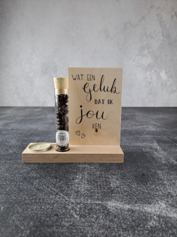 Tevens is er plaats voor een mooie kaart met gepaste boodschap.