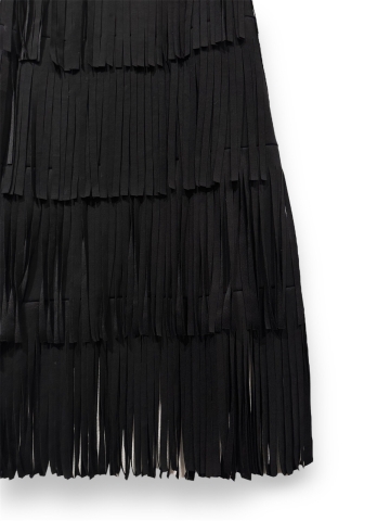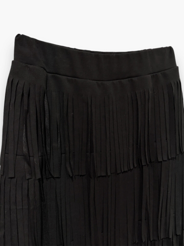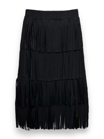 Rok zwart Country is eveneens een aparte rok uit de collectie van Lafée. Het is een rechte, zwarte lange rok met franjes in verschillende lagen. Kan zowel chique als casual gedragen worden. Mooi voor de feestdagen.