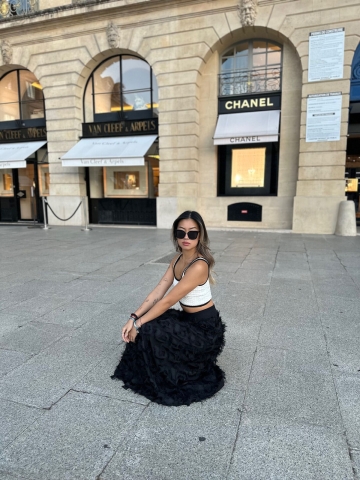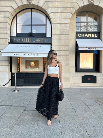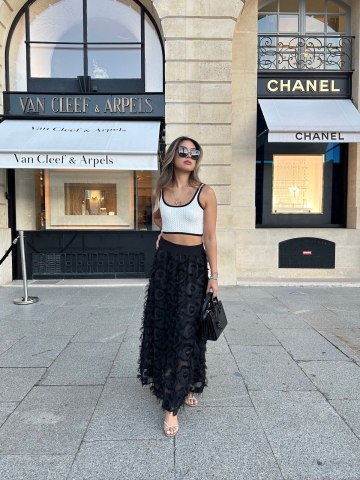 Rok zwart Laila is een gesofisticeerde rok uit de Lafée collectie. Deze rok valt soepel en de textuur van veertjes en patronen geeft de rok een volumineus en elegant effect. De zwarte elastische band is comfortabel en geeft een accent aan de taille. Deze unieke rok heeft een zodanige verfijnde uitstraling dat ze geschikt is voor speciale gelegenheden.