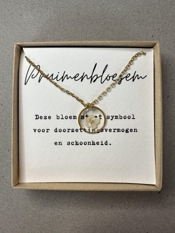 Bloemen zijn een product van de natuur. Elk bloemetje is uniek en ziet er iets anders uit. Het juweel dat u straks in de brievenbus krijgt, kan dus iets verschillen met deze foto.