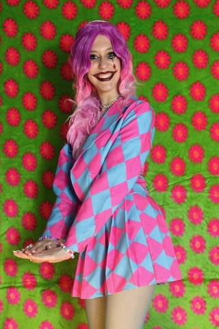 Maak je klaar om te stralen tijdens carnaval, themafeesten of verkleedpartijen met de Set Clownie roze en blauw van Insta Girl! Dit speelse pakje bestaat uit een kort plooirokje en een kort jasje, ontworpen om je een vrolijke, clownsachtige uitstraling te geven. Het vrolijke roze en blauwe geruite patroon zorgt voor een opvallende en feestelijke look, waardoor je gegarandeerd de aandacht trekt op elk feest.
