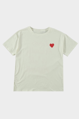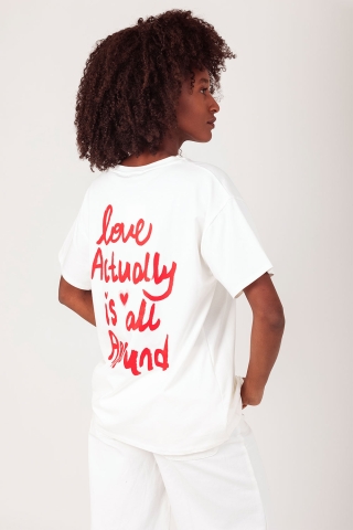 Shirt Love wit is een shirt van het merk Lumine. Het is een oversized en recht model. Rekbaar en vooraan een rood hartje en achteraan de tekst 'love actually is all around'.