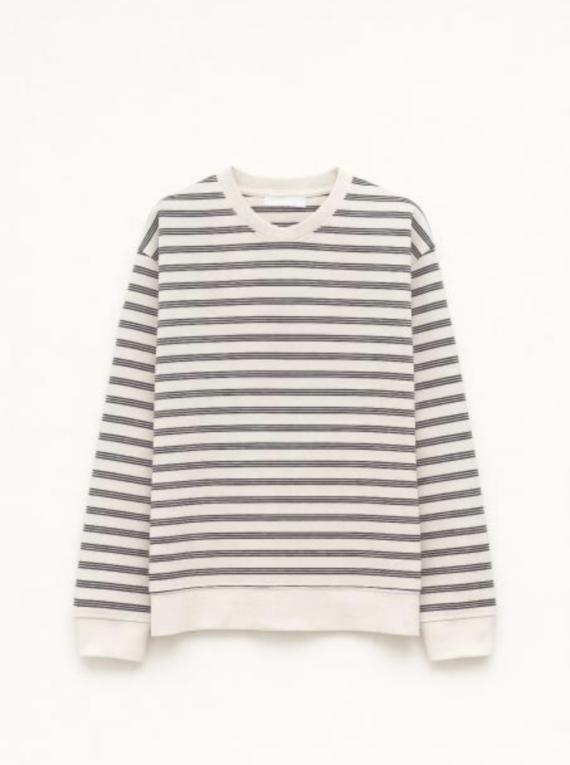 Het contrast tussen het off-white shirt en de donkere strepen geeft het geheel een frisse en moderne uitstraling. Hierdoor is het shirt een veelzijdig kledingstuk dat gemakkelijk te combineren is. Draag het casual met een jeans of combineer het met een rok of nette broek voor een meer geklede look.