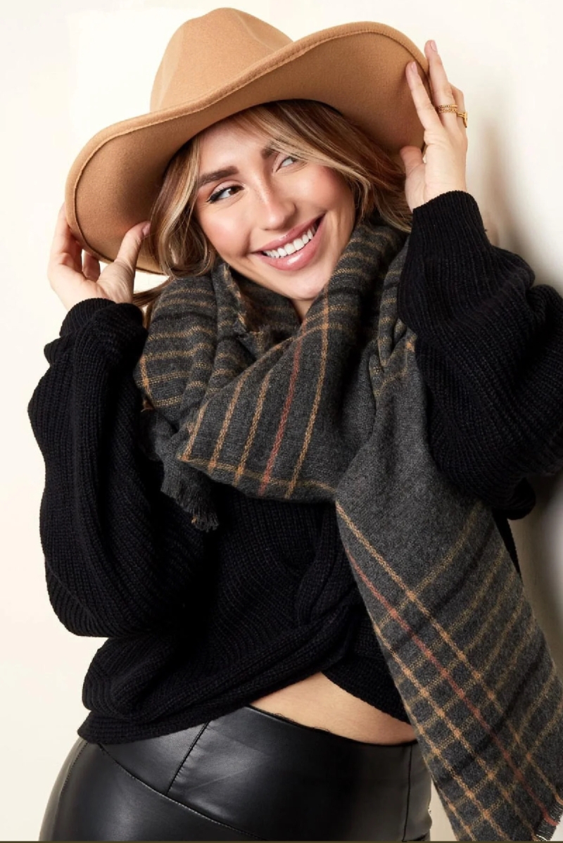 Deze heerlijke wintersjaal is versierd met beige en oranje strepen die een geblokt effect geven. Hij heeft een afmeting van 190cm x 75cm waardoor je hem volledig om je heen kunt slaan. Ideaal voor wanneer je collega het raam wilt open zetten 'voor wat verse lucht' ;) Hij is gemaakt van acryl, een zachte stof die niet kriebelt, maar wel genoeg warmte geeft.