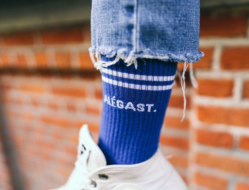 Comfortabele blauwe sokken met opschrift ALÉGAST. voor mannen en vrouwen. De kousen hebben een normale pasvorm met verdikking aan de zool voor extra comfort. Als cadeau of gewoon voor jezelf. Recht uit Antwerpen. Met trots voor het dialect.