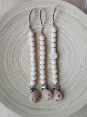 Deze speenkoord bestaat in drie variaties: neutraal, met donut, met sunshinekraal.