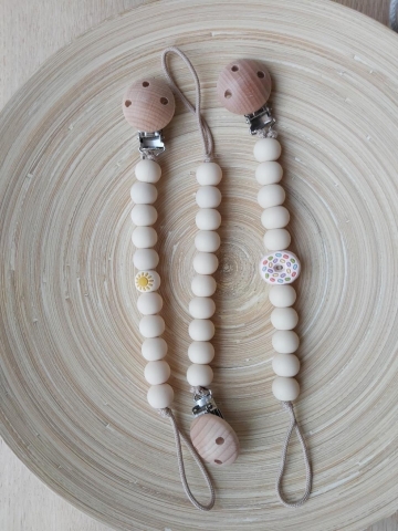 Onderhoud: De speenkoord mag gewassen worden in een mild sopje. Let er op dat je de speenclip wel goed droog maakt. Laat hem dan even drogen aan de lucht. Tip: om de houten speenclip mooi te houden smeer je deze best in met (kokos)olie na elke keer te wassen.