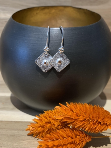 Unieke zilveren oorbellen met zalmkleurige zirconia